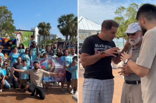 Logo depois, o evangelista convidou o público para entregar suas vidas a Cristo e orou com eles: “Senhor Jesus, nesta tarde, aqui no Mercado Público, eu vim aqui por outros motivos, e eu nunca imaginei que o Senhor ia conversar comigo aqui. Mas, nesse momento, eu entrego minha vida a ti, escreve o meu nome no livro da vida”.